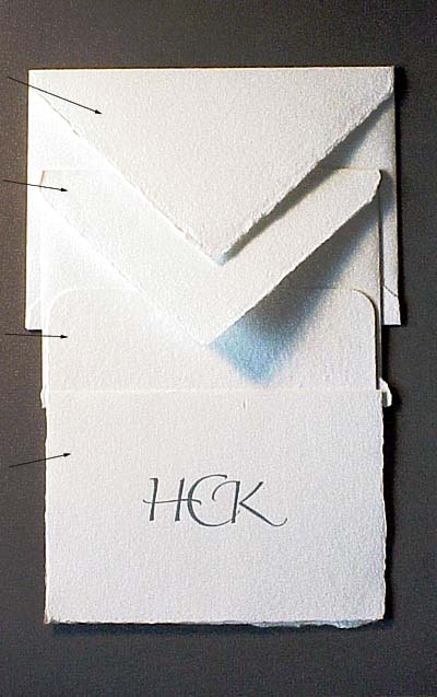 | Small Folded Invitation with Natural Deckled Edge (Item #9) (Makes a great thank you card) This Custom Monogram by Calligrapher Suzanne Moore was printed letterpress in Grey Blue Ink #5483. |