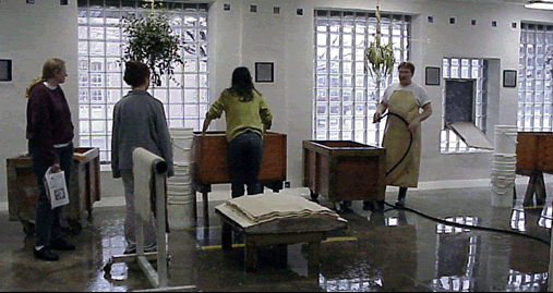 Twinrocker makes paper by hand from cotton the way paper was made in the 1600's in Europe. Small and large groups up to 70 people are welcome to visit Twinrocker and take a tour of the handmade paper studio.  A Twinrocker staff member will speak to your group about the history and practice of this ancient craft while you watch a master papermaker forming sheets by hand. We will also explain how plants become paper, why it sticks together, why paper may or may not be absorbent to water, how color is added, and how craftsmen, hundreds of years ago, created paper pulp and removed water from the freshly formed sheets without electricity. The discussion can also be customized for the particular age or interest of your group to include for example: care and storage of paper, surface textures, sizing for watercolor painting, making paper in a school classroom.  Each person will also receive a brochure and a sample of Twinrocker handmade paper.
